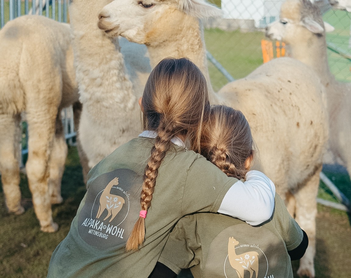 Schwestern die mit Herz, Geduld und einer grossen Portion Humor die gesamte Herde betreuen. Sie helfen liebevoll die Alpakas zu zähmen, kümmern sich um ihr Wohlbefinden und bringen grosse Freude mit ihrer Begeisterung und Lebensfreude.