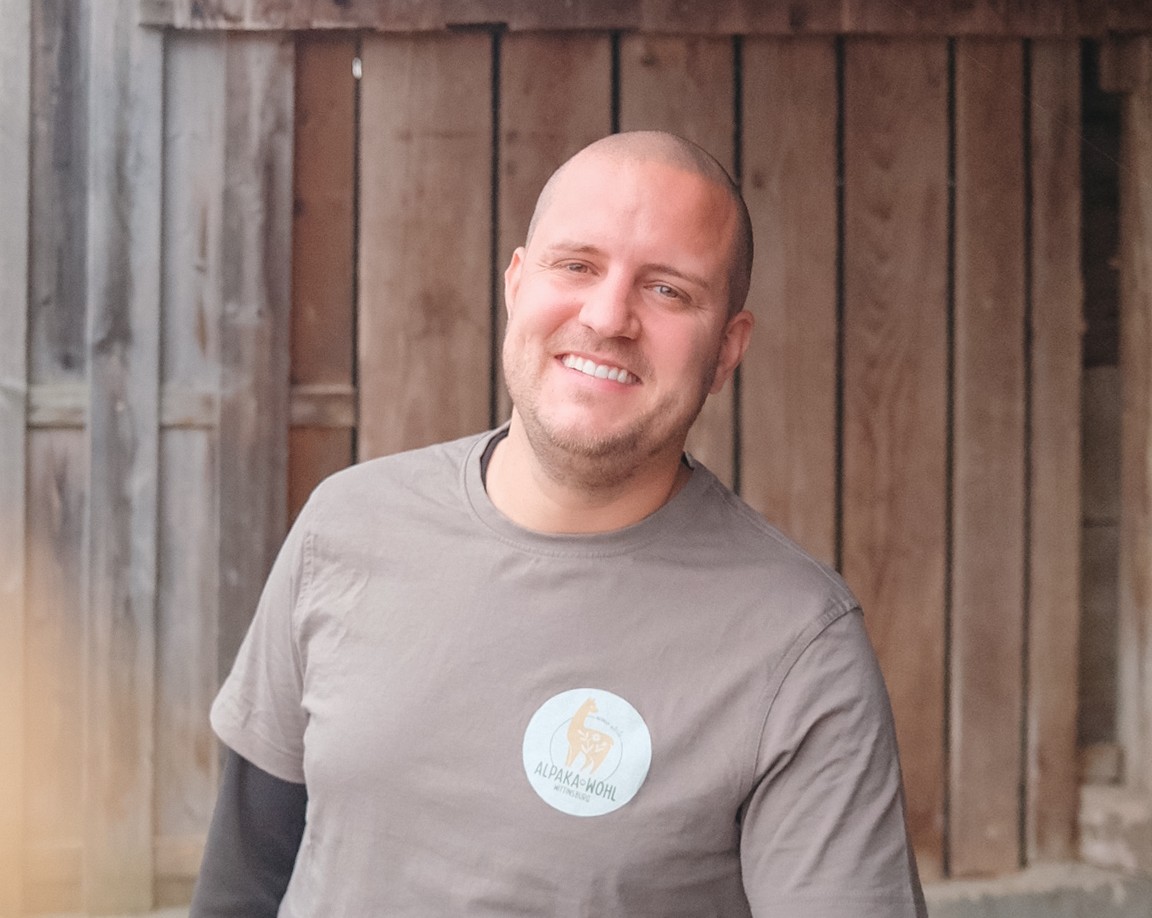Kümmert sich mit grosser Leidenschaft und Können um die Instandhaltung vom Betrieb und um alle Bereiche rund um die Alpakas - von Pflege, Fütterung, Betreuung der Herde bis hin zu Besucherführung.